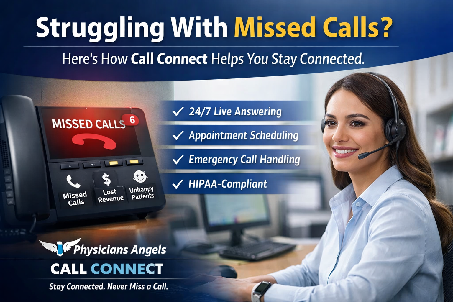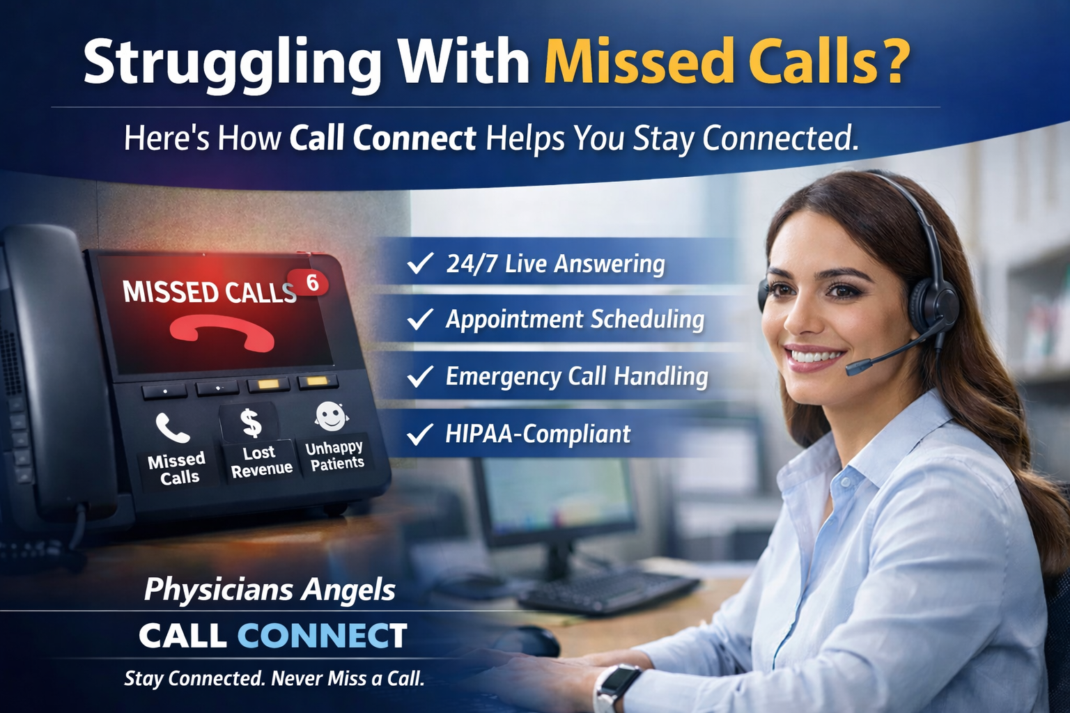 With Physicians Angels Call Connect, you’re not just answering phones, you’re strengthening patient relationships, protecting revenue, and improving operational efficiency.